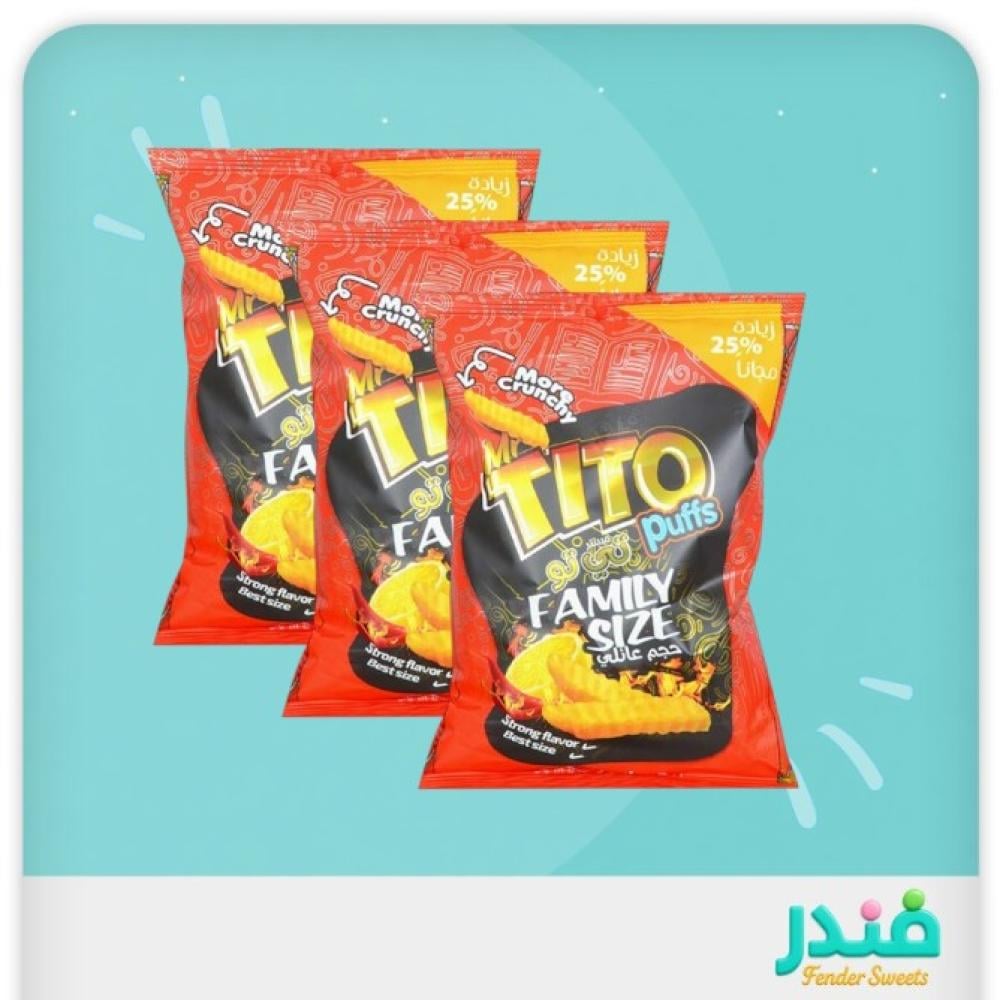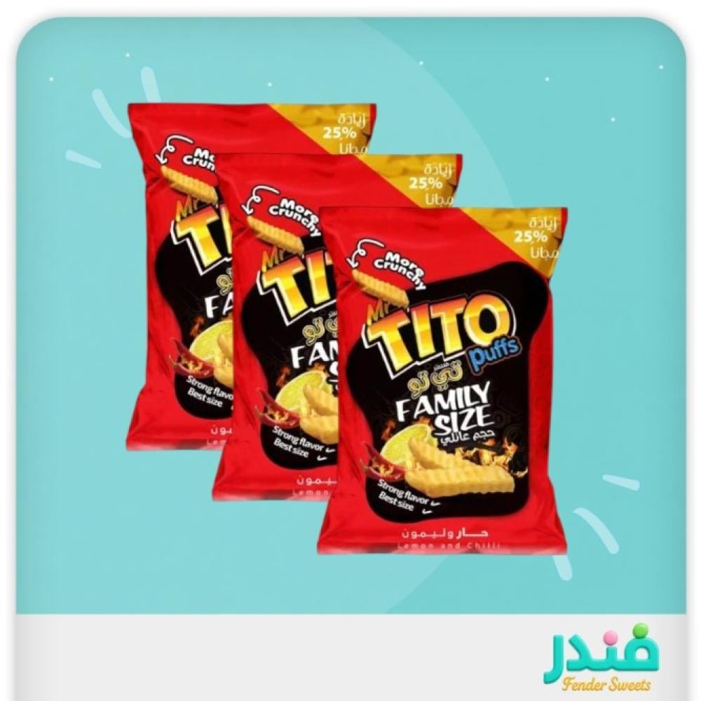 مستر تيتو منتفخات نكهة الفلفل الحار والليمون 3 عبوات الحجم العائلي